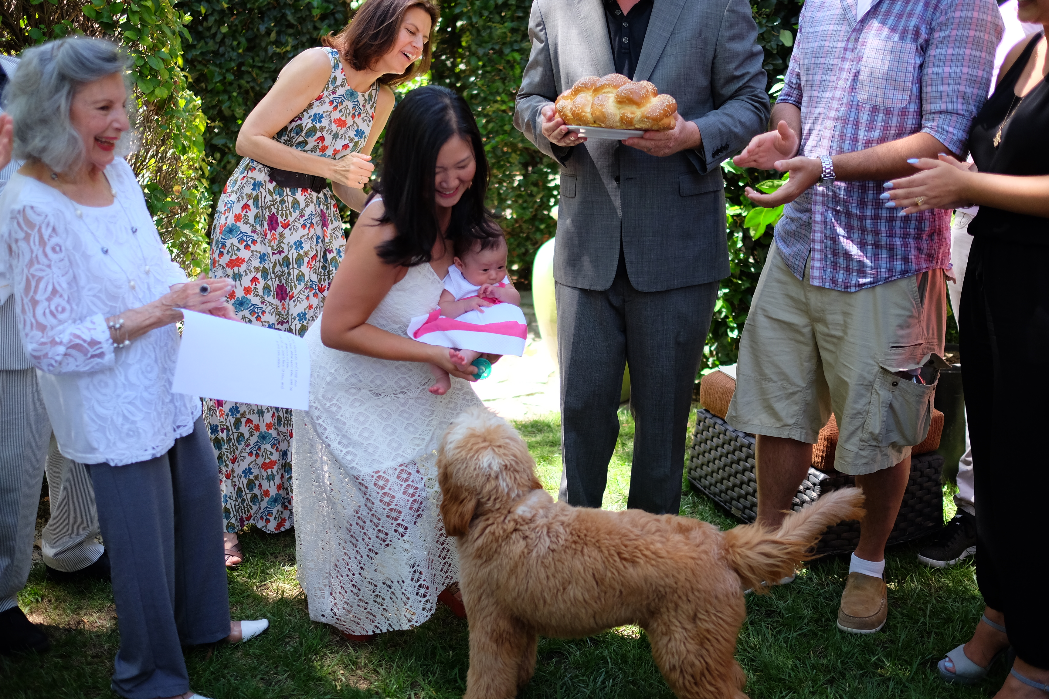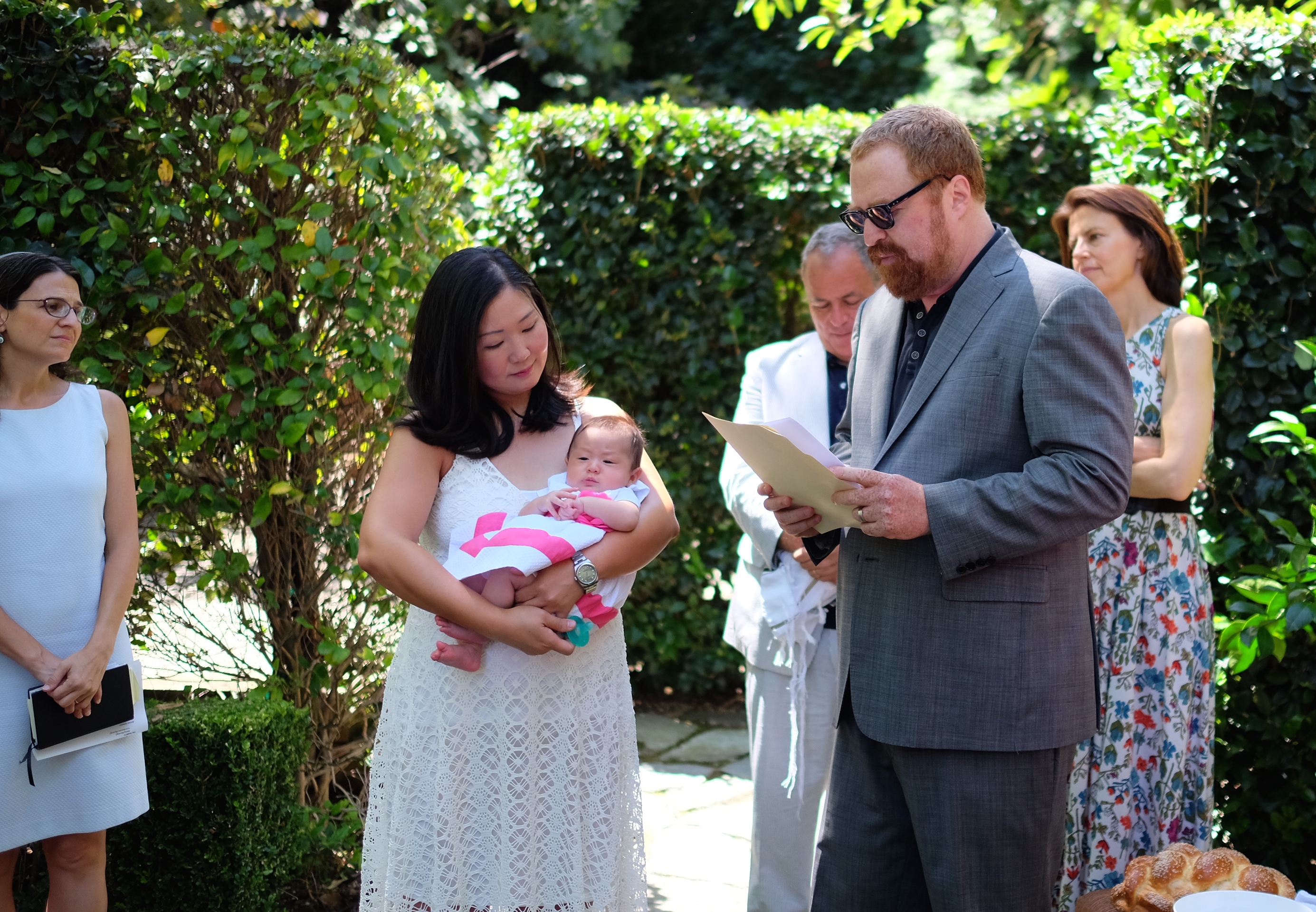 On Sunday August 30, 2015, Maddie celebrated her Brit Bat– the Jewish naming ceremony for newborn girls. Mom and Dad’s friend and Rabbi Sharon Brous led the service. It was held in the family backyard, right in front of the Secret Garden, on the very same spot that Mom and Dad took their wedding vows almost five years ago.